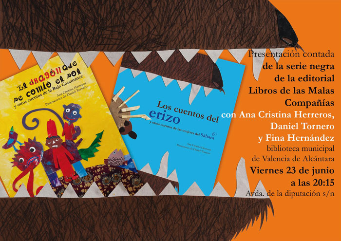 La escritora y narradora leonesa Ana Cristina Herreros presentará el próximo viernes, 23 de junio, a las 20:15 horas, en la Biblioteca Pública Municipal de Valencia de Alcántara, sus últimos libros, "El dragón que se comió el sol y otros cuentos de la Baja Casamance", basado en historias de la tradición oral diola, comunidad étnica de la región meridional de Senegal; y “Los cuentos del erizo y otros cuentos de las mujeres del Sáhara”, sobre cuentos recogidos en los campamentos de refugiados de Tinduf contados por las mujeres saharauis.