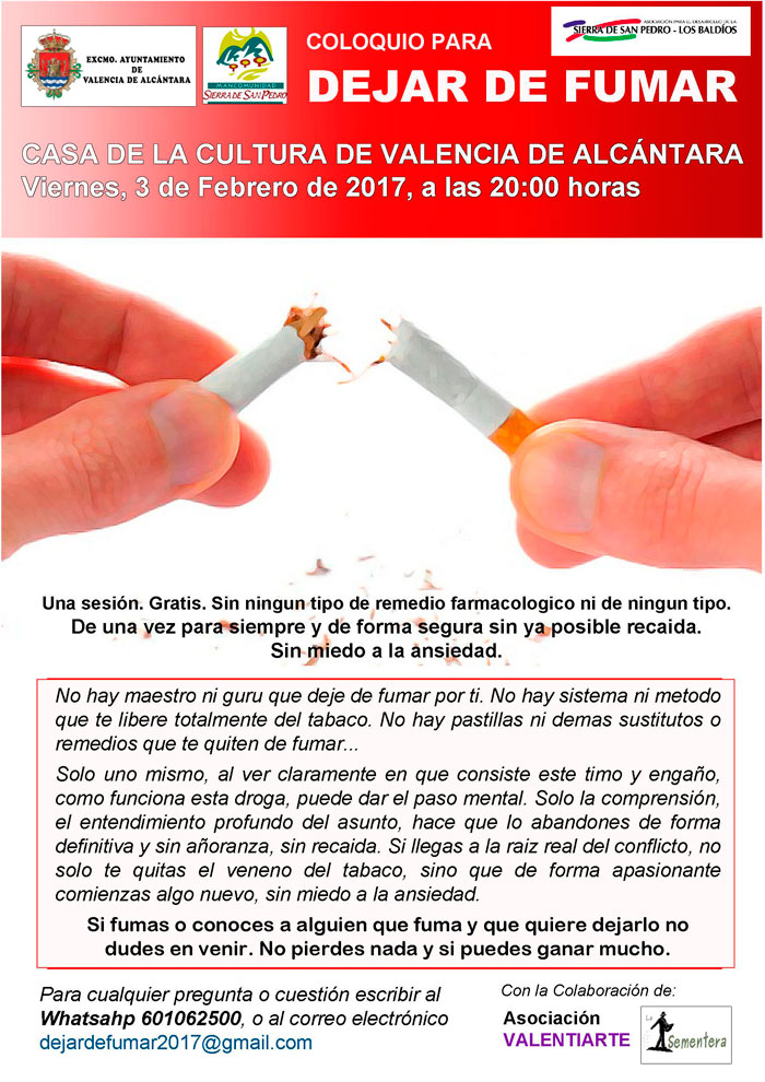 Si fumas o conoces a alguien que fuma y que quiere dejarlo no dudes en venir. No pierdes nada y si puedes ganar mucho.
